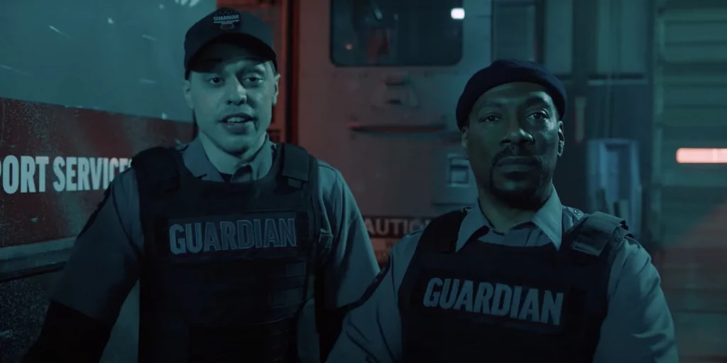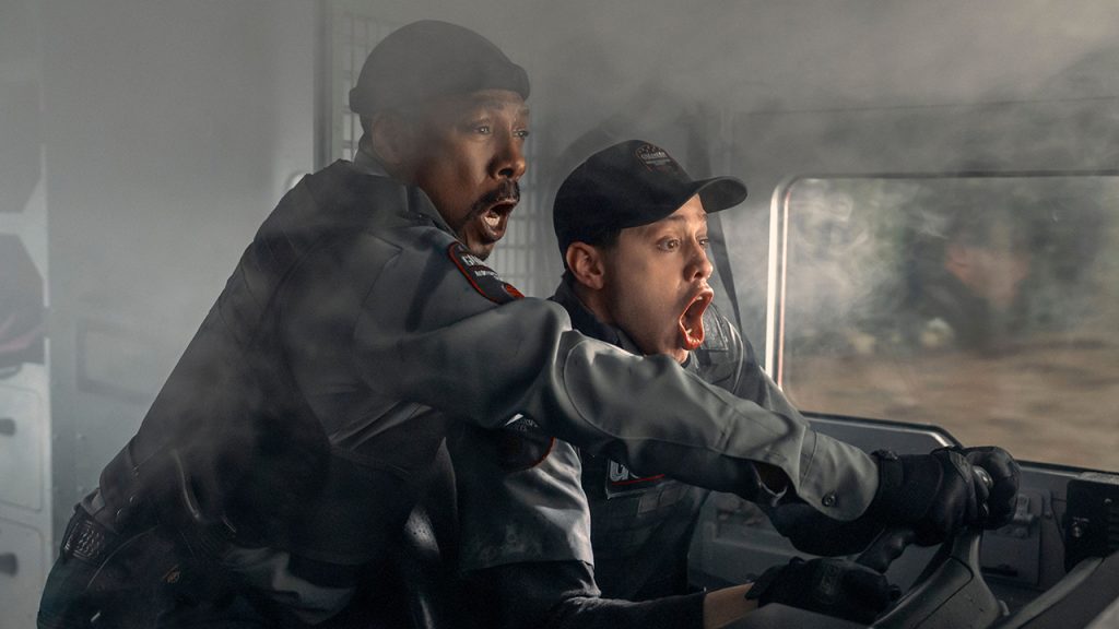 La trama è la seguente: Eddie Murphy è Russell, guardia giurata stanca, faccia da boxer sopravvissuto a troppi round con la vita. Accanto a lui l’attore Pete Davidson — che interpreta Travis — un nerd che parla come se avesse fumato un’intera tavola periodica. Il blindato è la loro gabbia, la loro bara semovente. Poi arriva Keke Palmer: bella, cattiva, magnetica. Lei non vuole i soldi. Vuole l’effetto domino. E qui il film ingrana la marcia: rapine, imboscate, strade di Atlanta che sembrano girate con il sangue ancora fresco sull’asfalto (e non è solo cinema: durante le riprese c’è stato un incidente vero, gente della troupe finita in ospedale. Questa pellicola puzza di ferro e lamiera già nei titoli di testa).