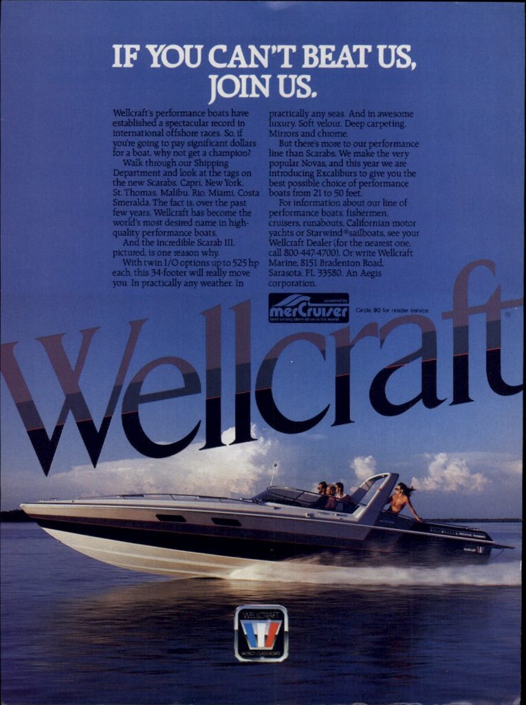 Alla fine degli anni Settanta e all’inizio degli Ottanta, mentre l’America riscopriva l’ossessione per la velocità in tutte le sue forme(su strada, in aria e in borsa) Scarab portava quella stessa follia sull’acqua. Non erano barche: erano dichiarazioni di intenti.