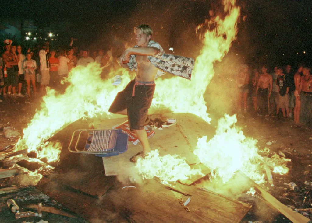 L’ultima notte fu la più surreale. Durante la memorabile esibizione dei Red Hot Chili Peppers, mentre suonavano una cover di Fire di Jimi Hendrix e il mitico Flea suonava il basso con l’uccello di fuori, il pubblico iniziò ad appiccare incendi prendendoli sul serio, come in una sorta di profezia tragicomica.