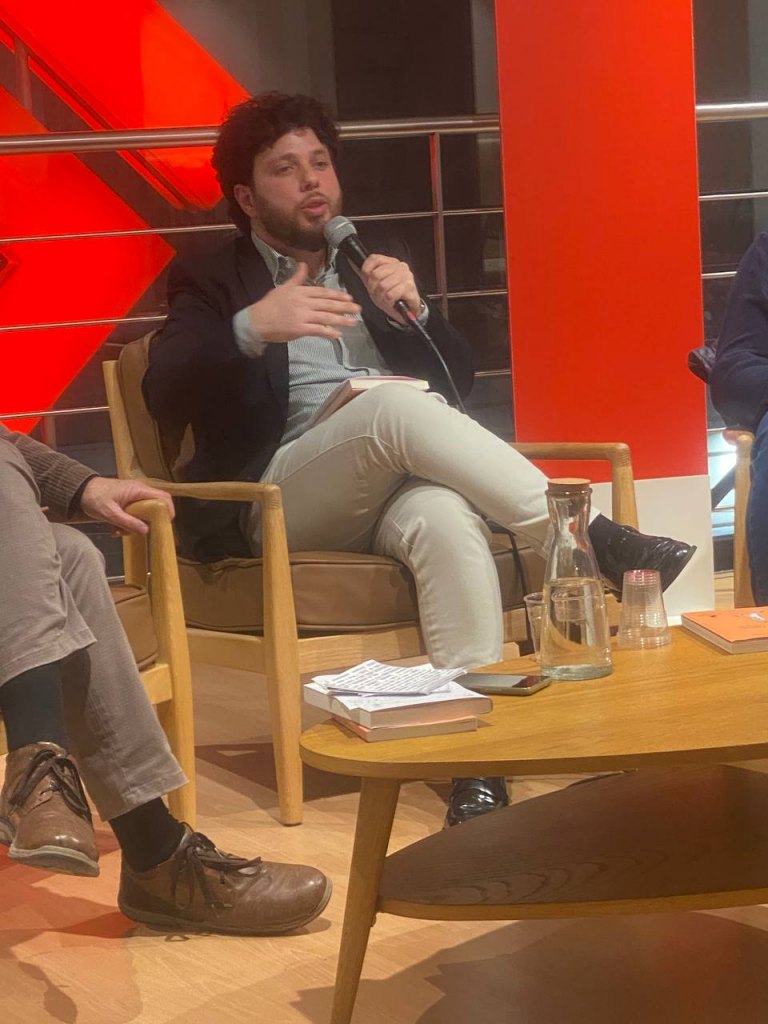 A dialogare con loro troviamo anche Roberto Fai, preside del Collegio Siciliano di Filosofia, che non si limita a intervenire all’interno di un dialogo aperto, ma mostra con garbo cosa vuol dire accendere le micce del pensiero critico autentico nelle menti dei propri studenti. Ogni frase è una miccia che si accende come fuoco gentile, una lente d’ingrandimento attuale. Come fosse una tela del pensiero che va riempita grazie ad azioni e colori, con quel fruscio inconfondibile che preannuncia una piccola esplosione. Fai prende i concetti del libro, li guarda, li analizza, li lascia decantare e poi li poggia nel mezzo della sala come molotov concettuali, capaci di destabilizzare il pensiero e di ricostruirlo.